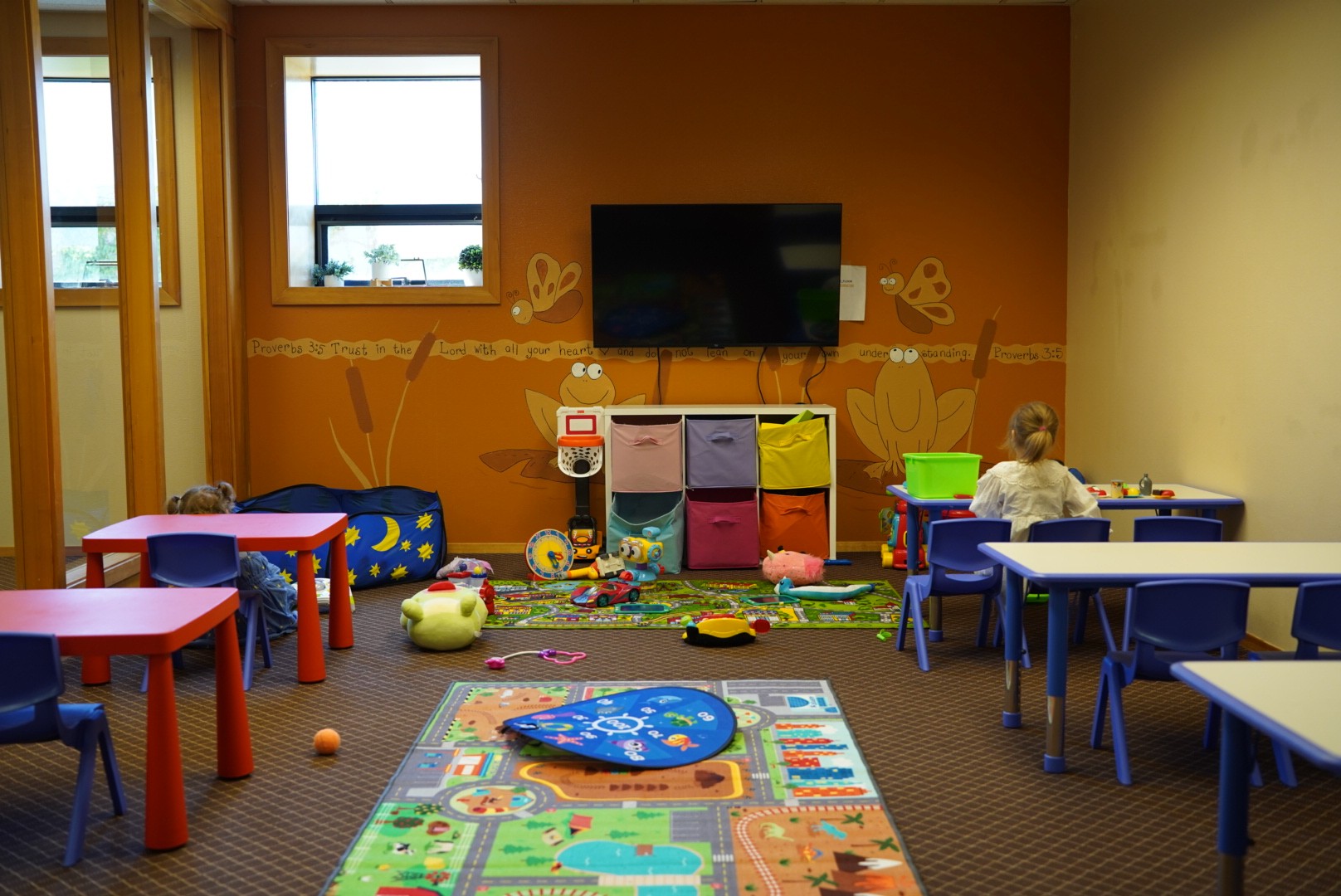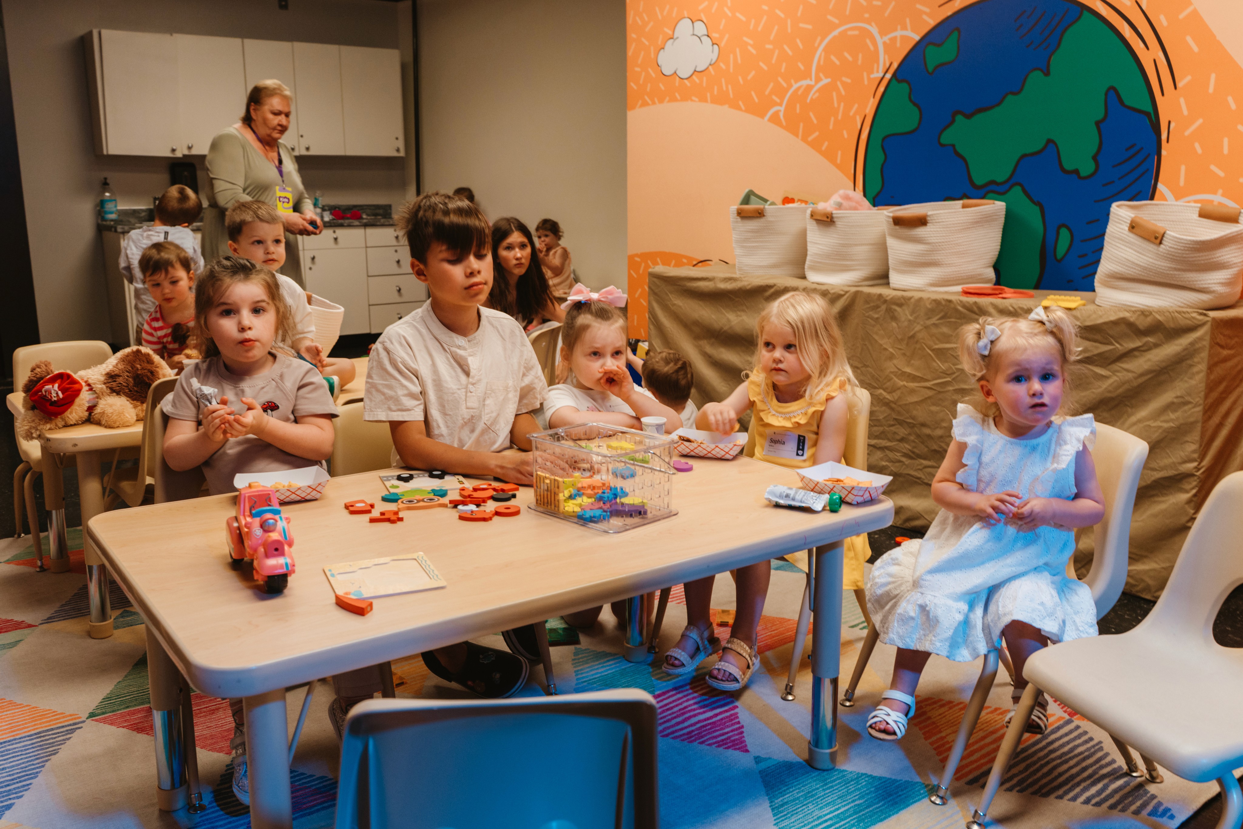 Gentle care in a safe, nurturing space. Toddlers enjoy simple Bible stories, songs, sensory play, and lots of love from trusted volunteers